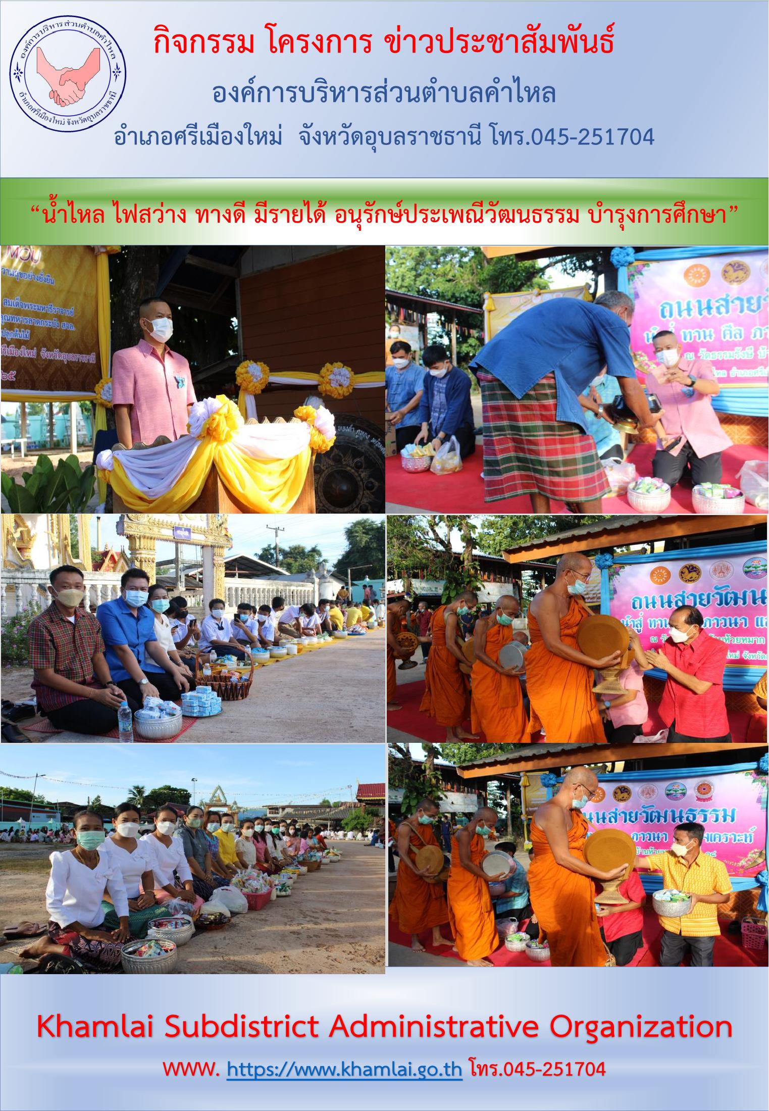ทำบุญตักบาตรถนนสายวัฒนธรรม ณ วัดธรรมรังษี บ้านห้วยหมาก หมู่ที่ 18 ตำบลคำไหล
